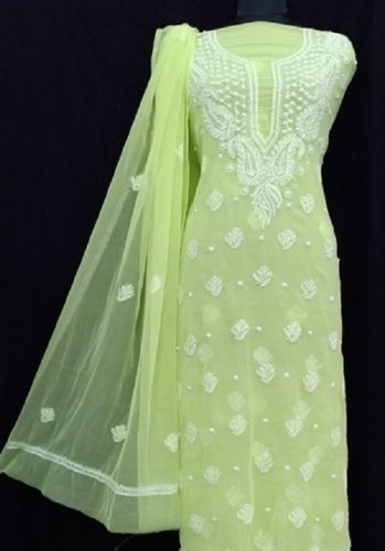 Vibrant Lime Green Suit with Floral Appliqué Work